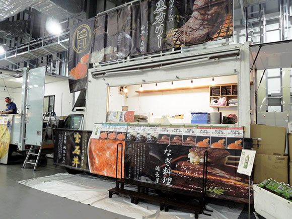 青海展示棟の周りは食事処が少ないので全7台のキッチンカーを手配!