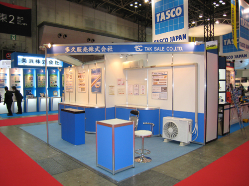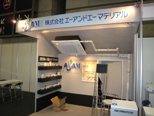 ●エーアンドエーマテリアル様のブースです。 配管システムを強調。空調機(エアコン)はダミーです。