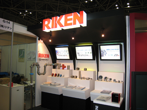 ●リケン様のブースです。 1小間ですが、めいっぱいプレゼンテーションするブースです。