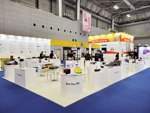 アイズ・プロダクションでは展示会に出展されました、 株式会社ウンソングローバル 様、 リアン株式会社様、 株式会社FROM NOW INTERNATIONAL様、 寿康美株式会社様のブース制作(造作)をお手伝いさせていただきました。